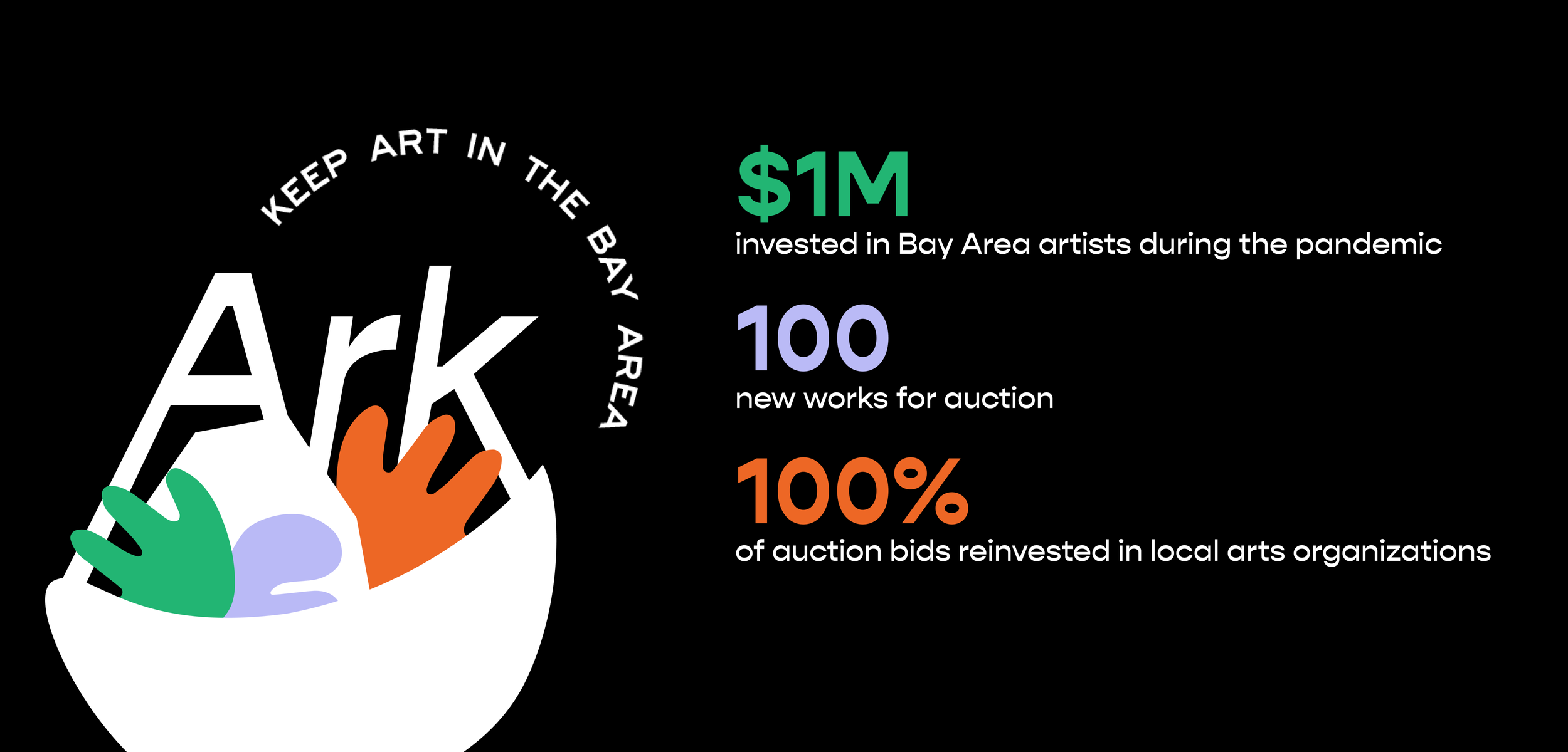In 2020, in the midst of the pandemic, the Svane Family Foundation invested $1M in 100 Bay Area artists. Ark, a historic collection of 100 new works curated for auction, is a direct expression of how Bay Area artists have endured the pandemic while envisioning what to carry forward into the future. 100% of auction bids were donated to ArtSpan, a local nonprofit cultivating a vibrant, accessible, world-class art community in San Francisco. You can read more about this program in Juxtapoz and Hyperallergic.